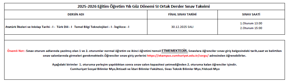 5ı Ortak Dersler Final Sınav Tarihleri İçin Tıklayınız